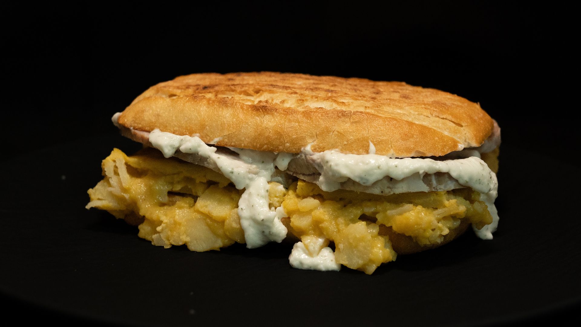 BOCATA DE TORTILLA DE PATATAS, CARNE DE LOMO EN SALSA Y ALIOLI
